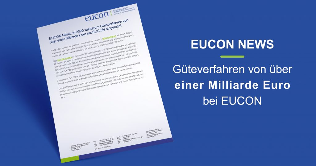 EUCON News: In 2020 wiederum Güteverfahren von über einer Milliarde Euro bei EUCON eingeleitet